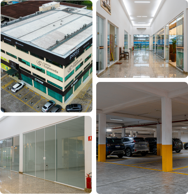 A Galeria Esplanada foi projetada para oferecer um ambiente moderno, funcional e conveniente para lojistas e visitantes. Com uma infraestrutura planejada para o conforto e segurança, a galeria conta com estacionamento interno e externo, segurança 24h e um ambiente climatizado e bem iluminado.